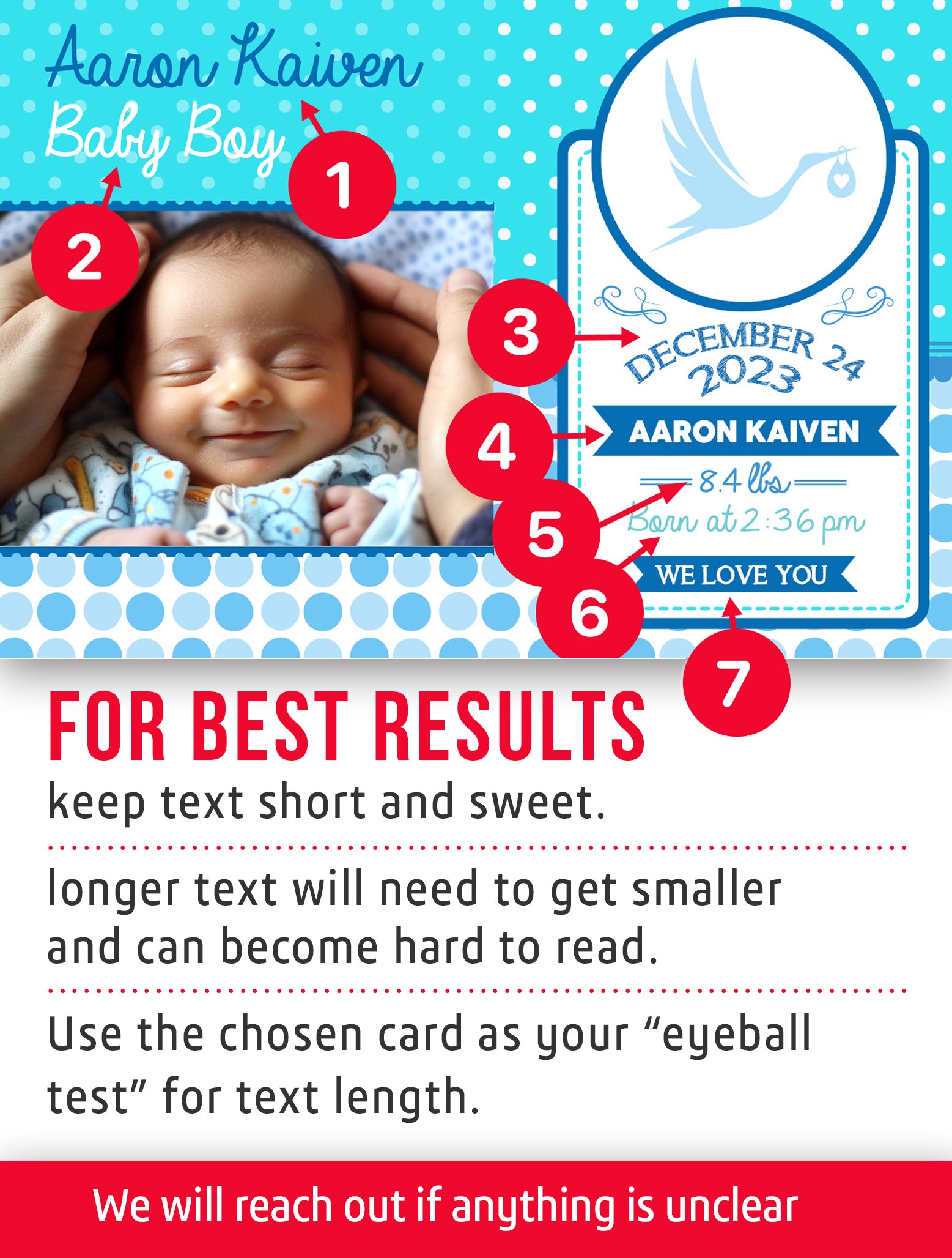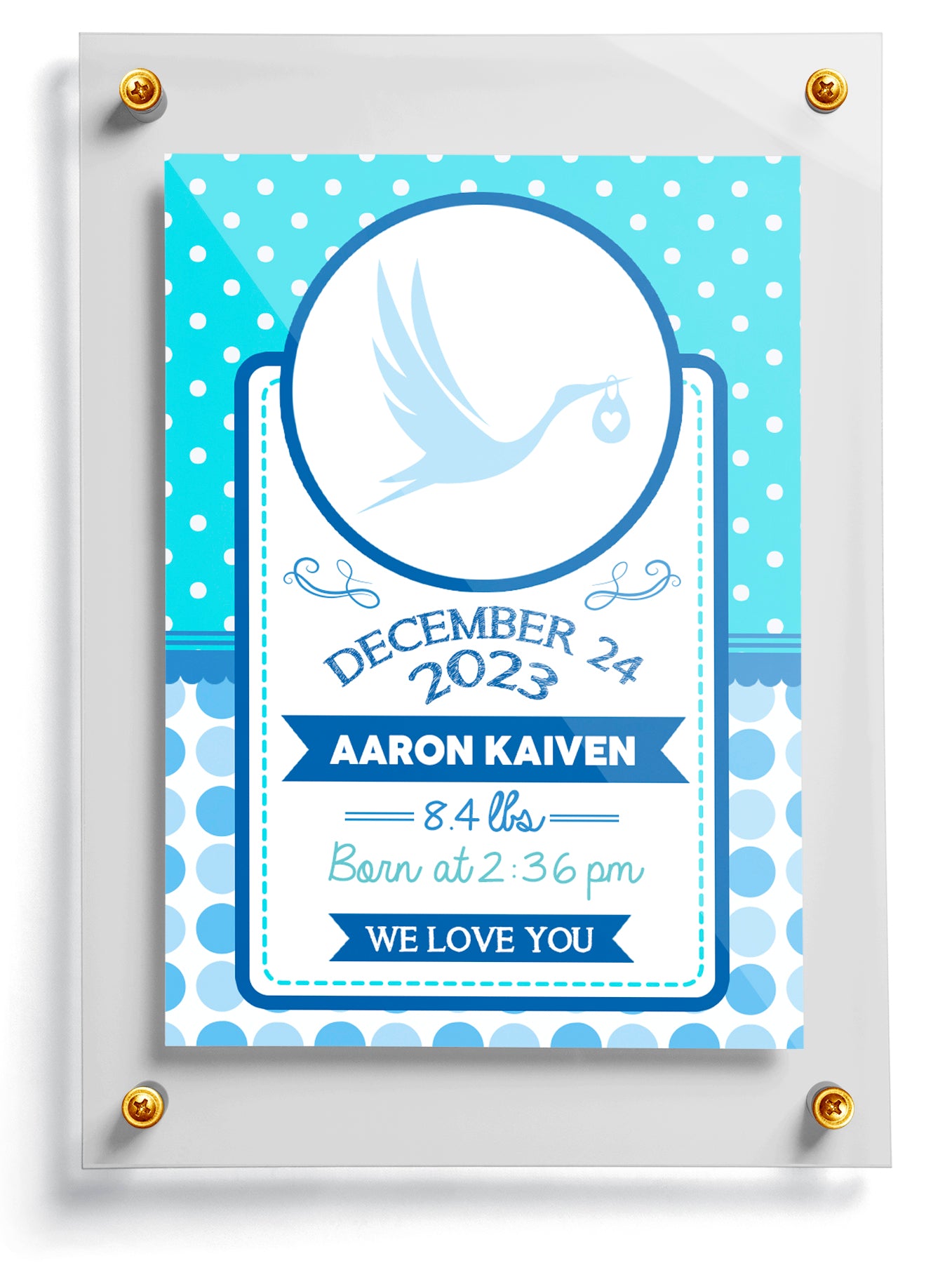 Flying in with love! This stork-themed newborn trading card can be personalized with name, birth stats, and photo, creating a playful keepsake that captures the magic of your baby’s arrival. Comes in a clear acrylic case with iron stand, perfect for the nursery or gifting to family and friends.